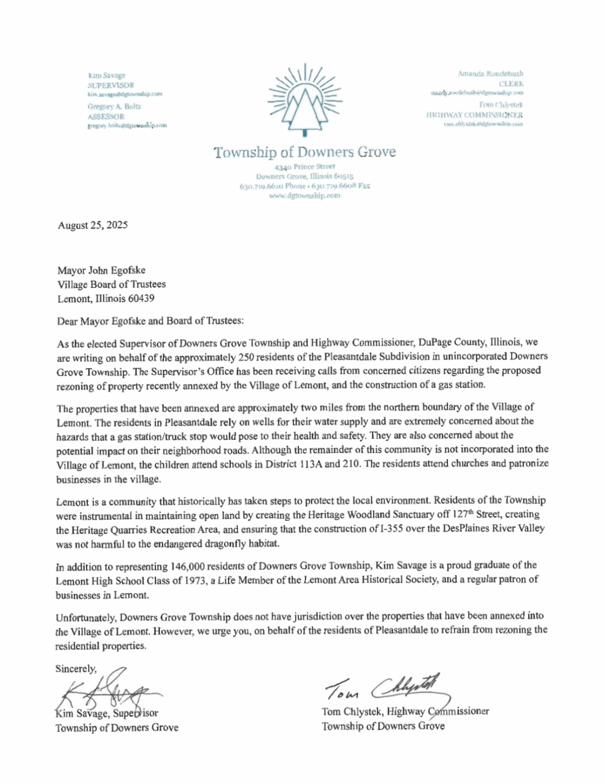 Pleasantdale residents and supporters have taken the time to voice their deep concerns about the proposed Gas N Wash development through formal letters to the Lemont Village Board and Mayor. These letters represent the collective voice of our community including families, long-time residents, and neighbors who are united in opposition to this project. The common themes throughout these letters include concerns about increased traffic congestion on residential streets, safety risks to children and families, environmental impact from potential fuel spills and air quality degradation, and the fundamental incompatibility of a 24-hour commercial gas station with our quiet, residential neighborhood character. We will continue to add more letters like these as we receive them.
