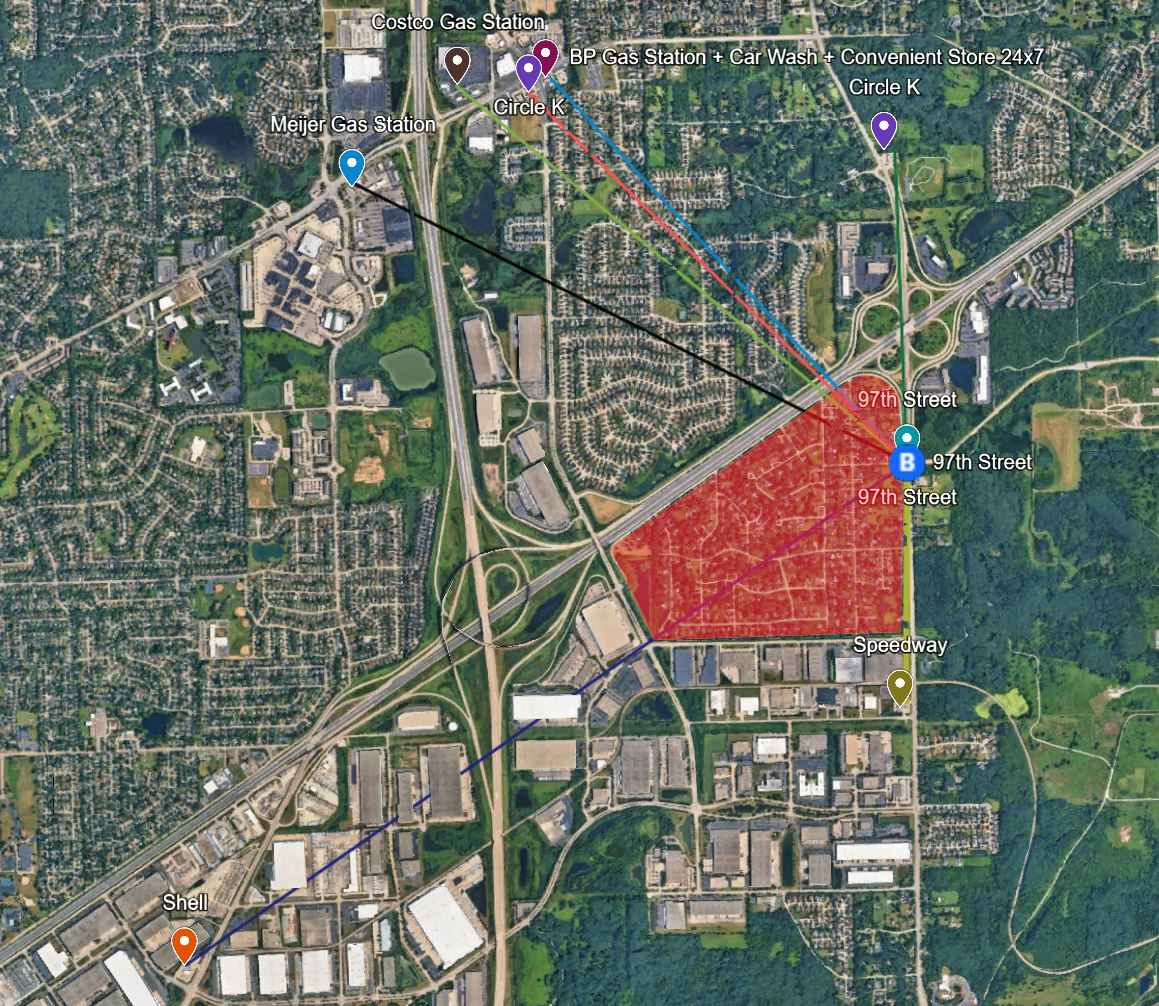 The Pleasantdale subdivision is already surrounded by an excessive concentration of gas stations, with 6 gas stations located within a 2-mile radius of our residential area and 2 gas stations within 1 mile. This includes major chains such as BP, Circle K, Costco, Meijer, Shell, and Speedway, creating a saturation of fuel facilities in our area. The addition of yet another gas station at the proposed truck stop location is completely unnecessary and would only compound the existing environmental and health concerns our neighborhood already faces.